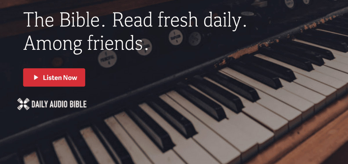 The Daily Audio Bible: having Scripture in the daily rhythm of your life changes things. The Daily Audio Bible is committed to guiding you into an intimate and daily friendship with the Bible.